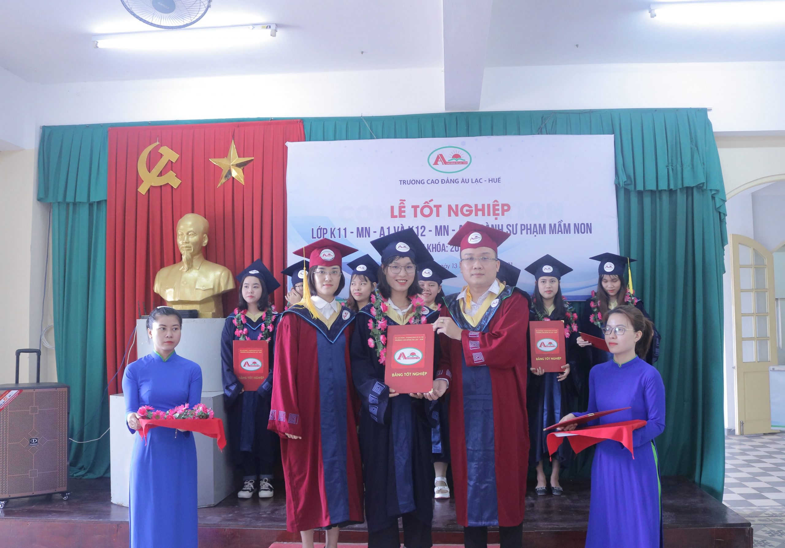 Vào sáng ngày 13/03/2021 Trường Cao đẳng Âu Lạc – Huế long trọng tổ chức buổi lễ trao thưởng cho học sinh giỏi & phát bằng tốt nghiệp cho tân khoa lớp K12-MN-B1 & K11-MN-A1 niên khóa 2018-2020.